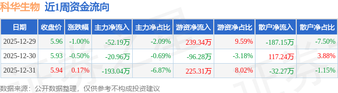 资金流向数据方面,本周科华生物主力资金合计净流出266.19万元,游资资金合计净流入368.37万元,散户资金合计净流出102.18万元。本周资金流向一览见下表: