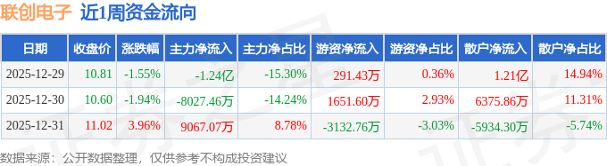 资金流向数据方面,本周联创电子主力资金合计净流出1.14亿元,游资资金合计净流出1189.73万元,散户资金合计净流入1.26亿元。本周资金流向一览见下表: