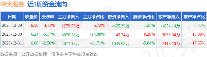 资金流向数据方面,本周中天服务主力资金合计净流出2873.93万元,游资资金合计净流出1418.13万元,散户资金合计净流入4292.06万元。本周资金流向一览见下表: