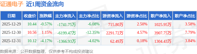资金流向数据方面,本周证通电子主力资金合计净流出9308.15万元,游资资金合计净流入3070.02万元,散户资金合计净流入6238.13万元。本周资金流向一览见下表: