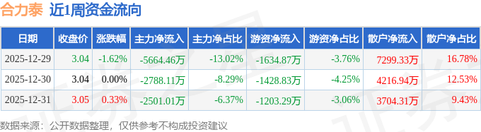 证券之星消息,截至2025年12月31日收盘,合力泰(002217)报收于3.05元,较上周的3.09元下跌1.29%。本周,合力泰12月29日盘中最高价报3.09元。12月31日盘中最低价报2.99元。合力泰当前最新总市值228.12亿元,在光学光电子板块市值排名11/92,在两市A股市值排名864/5181。
