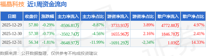资金流向数据方面,本周福晶科技主力资金合计净流出2.07亿元,游资资金合计净流入3698.6万元,散户资金合计净流入1.7亿元。本周资金流向一览见下表:
