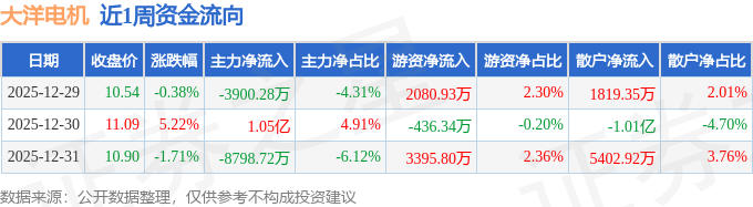 资金流向数据方面,本周大洋电机主力资金合计净流出2178.67万元,游资资金合计净流入5040.38万元,散户资金合计净流出2861.71万元。本周资金流向一览见下表: