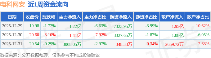 资金流向数据方面,本周电科网安主力资金合计净流出1067.99万元,游资资金合计净流出1.03亿元,散户资金合计净流入1.14亿元。本周资金流向一览见下表: