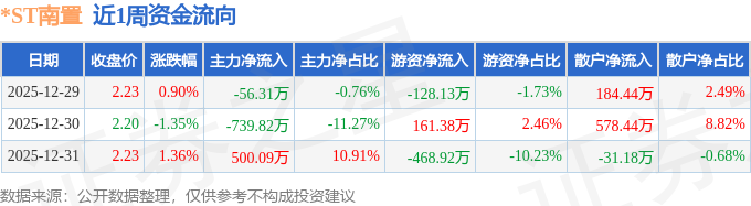 资金流向数据方面,本周*ST南置主力资金合计净流出296.03万元,游资资金合计净流出435.66万元,散户资金合计净流入731.7万元。本周资金流向一览见下表: