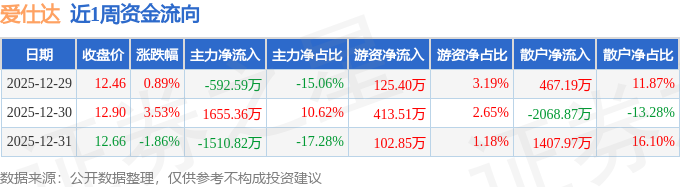 资金流向数据方面,本周爱仕达主力资金合计净流出448.05万元,游资资金合计净流入641.76万元,散户资金合计净流出193.7万元。本周资金流向一览见下表: