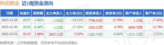 证券之星消息,截至2025年12月31日收盘,科伦药业(002422)报收于29.35元,较上周的29.28元上涨0.24%。本周,科伦药业12月31日盘中最高价报29.45元。12月30日盘中最低价报28.14元。科伦药业当前最新总市值469.03亿元,在化学制药板块市值排名10/150,在两市A股市值排名390/5181。