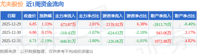 沪深股通持股方面,截止2025年12月31日收盘,尤夫股份深股通持股数为320.46万股,占流通股比为33.0%。