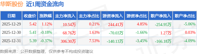 资金流向数据方面,本周华斯股份主力资金合计净流入385.61万元,游资资金合计净流入34.25万元,散户资金合计净流出419.86万元。本周资金流向一览见下表: