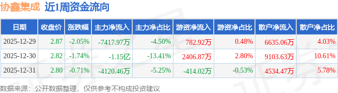资金流向数据方面,本周协鑫集成主力资金合计净流出2.3亿元,游资资金合计净流入2775.77万元,散户资金合计净流入2.03亿元。本周资金流向一览见下表: