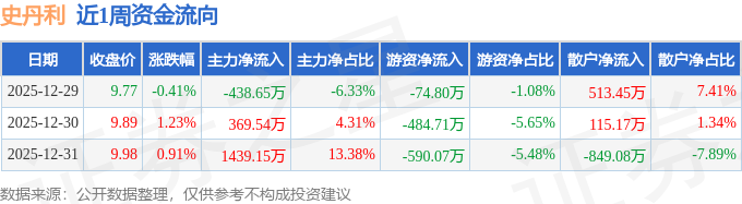 资金流向数据方面,本周史丹利主力资金合计净流入1370.04万元,游资资金合计净流出1149.58万元,散户资金合计净流出220.46万元。本周资金流向一览见下表: