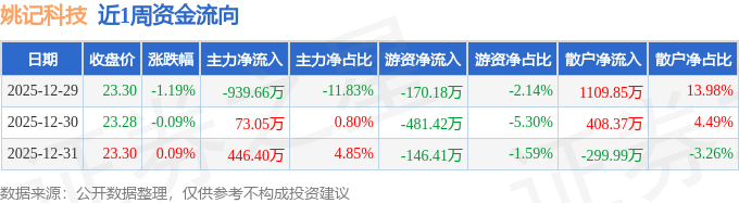资金流向数据方面,本周姚记科技主力资金合计净流出420.22万元,游资资金合计净流出798.01万元,散户资金合计净流入1218.23万元。本周资金流向一览见下表: