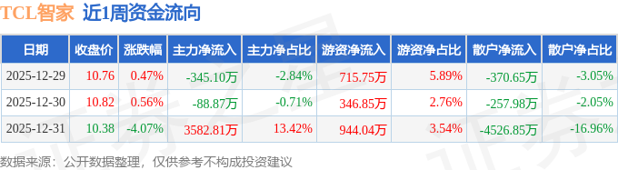 资金流向数据方面,本周TCL智家主力资金合计净流入3148.84万元,游资资金合计净流入2006.64万元,散户资金合计净流出5155.48万元。本周资金流向一览见下表: