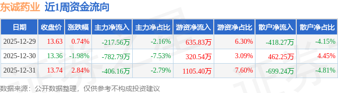 资金流向数据方面,本周东诚药业主力资金合计净流出1406.51万元,游资资金合计净流入2061.77万元,散户资金合计净流出655.26万元。本周资金流向一览见下表: