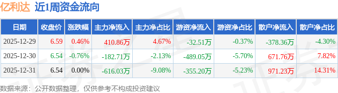 资金流向数据方面,本周亿利达主力资金合计净流出387.88万元,游资资金合计净流出876.75万元,散户资金合计净流入1264.63万元。本周资金流向一览见下表: