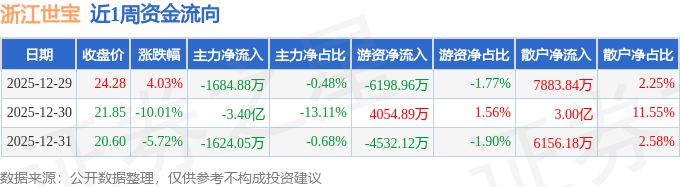 资金流向数据方面,本周浙江世宝主力资金合计净流出3.73亿元,游资资金合计净流出6676.19万元,散户资金合计净流入4.4亿元。本周资金流向一览见下表:
