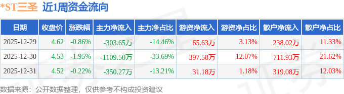 资金流向数据方面,本周*ST三圣主力资金合计净流出1763.42万元,游资资金合计净流入494.39万元,散户资金合计净流入1269.03万元。本周资金流向一览见下表: