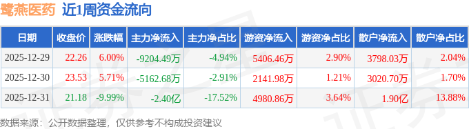 资金流向数据方面,本周鹭燕医药主力资金合计净流出3.84亿元,游资资金合计净流入1.25亿元,散户资金合计净流入2.58亿元。本周资金流向一览见下表: