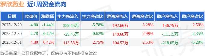 资金流向数据方面,本周罗欣药业主力资金合计净流出255.37万元,游资资金合计净流入437.78万元,散户资金合计净流出182.41万元。本周资金流向一览见下表: