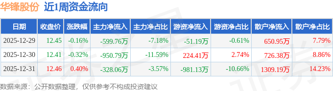 资金流向数据方面,本周华锋股份主力资金合计净流出1878.61万元,游资资金合计净流出807.91万元,散户资金合计净流入2686.52万元。本周资金流向一览见下表: