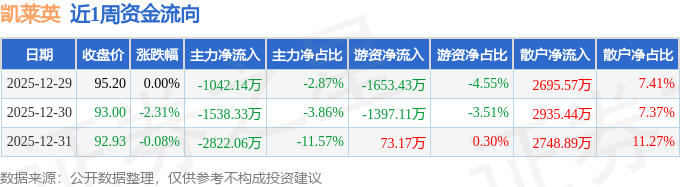 资金流向数据方面,本周凯莱英主力资金合计净流出5402.53万元,游资资金合计净流出2977.37万元,散户资金合计净流入8379.9万元。本周资金流向一览见下表:
