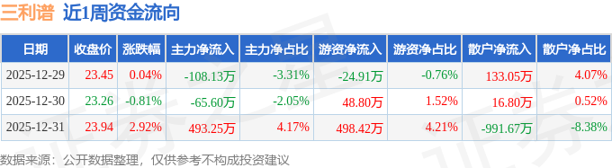 沪深股通持股方面,截止2025年12月31日收盘,三利谱深股通持股数为143.0万股,占流通股比为96.0%。
