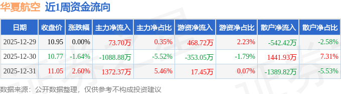 资金流向数据方面,本周华夏航空主力资金合计净流入357.19万元,游资资金合计净流入133.12万元,散户资金合计净流出490.31万元。本周资金流向一览见下表: