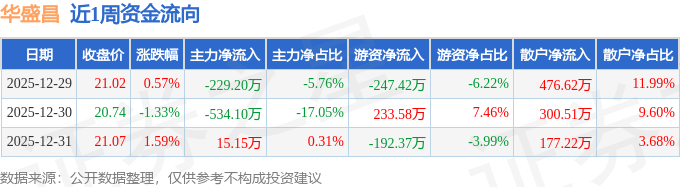 资金流向数据方面,本周华盛昌主力资金合计净流出748.14万元,游资资金合计净流出206.21万元,散户资金合计净流入954.35万元。本周资金流向一览见下表: