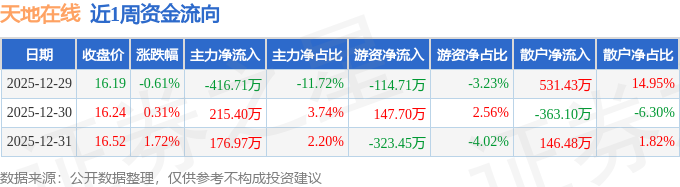 资金流向数据方面,本周天地在线主力资金合计净流出24.35万元,游资资金合计净流出290.45万元,散户资金合计净流入314.8万元。本周资金流向一览见下表: