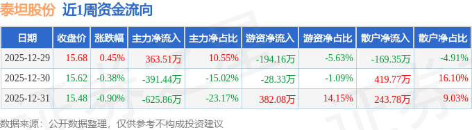 资金流向数据方面,本周泰坦股份主力资金合计净流出653.78万元,游资资金合计净流入159.58万元,散户资金合计净流入494.2万元。本周资金流向一览见下表: