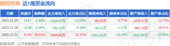 沪深股通持股方面,截止2025年12月31日收盘,顺控发展深股通持股数为93.93万股,占流通股比为15.0%。