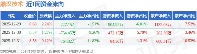 资金流向数据方面,本周鼎汉技术主力资金合计净流出1746.42万元,游资资金合计净流出348.27万元,散户资金合计净流入2094.69万元。本周资金流向一览见下表:
