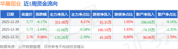 资金流向数据方面,本周华星创业主力资金合计净流入184.09万元,游资资金合计净流入196.79万元,散户资金合计净流出380.88万元。本周资金流向一览见下表: