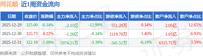证券之星消息,截至2025年12月31日收盘,同花顺(300033)报收于322.18元,较上周的326.11元下跌1.21%。本周,同花顺12月31日盘中最高价报329.59元。12月31日盘中最低价报322.18元。同花顺当前最新总市值1732.04亿元,在软件开发板块市值排名1/133,在两市A股市值排名88/5181。