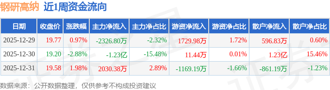 资金流向数据方面,本周钢研高纳主力资金合计净流出1.26亿元,游资资金合计净流入572.23万元,散户资金合计净流入1.21亿元。本周资金流向一览见下表: