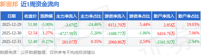 资金流向数据方面,本周新宙邦主力资金合计净流出4.11亿元,游资资金合计净流入8523.87万元,散户资金合计净流入3.26亿元。本周资金流向一览见下表: