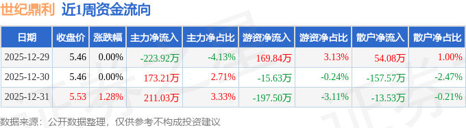 资金流向数据方面,本周世纪鼎利主力资金合计净流入160.32万元,游资资金合计净流出43.3万元,散户资金合计净流出117.02万元。本周资金流向一览见下表: