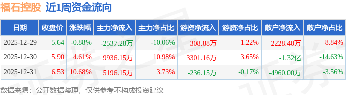 资金流向数据方面,本周福石控股主力资金合计净流入1.26亿元,游资资金合计净流入3373.89万元,散户资金合计净流出1.6亿元。本周资金流向一览见下表: