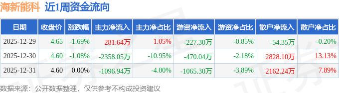 资金流向数据方面,本周海新能科主力资金合计净流出3173.35万元,游资资金合计净流出1762.63万元,散户资金合计净流入4935.98万元。本周资金流向一览见下表: