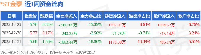 资金流向数据方面,本周*ST金泰主力资金合计净流出4398.48万元,游资资金合计净流入2503.59万元,散户资金合计净流入1894.89万元。本周资金流向一览见下表: