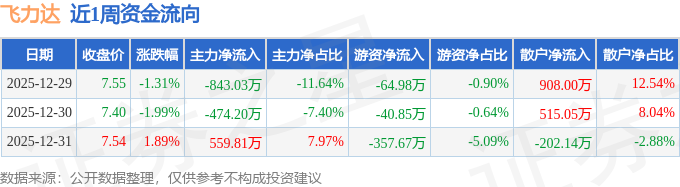 资金流向数据方面,本周飞力达主力资金合计净流出757.42万元,游资资金合计净流出463.5万元,散户资金合计净流入1220.92万元。本周资金流向一览见下表: