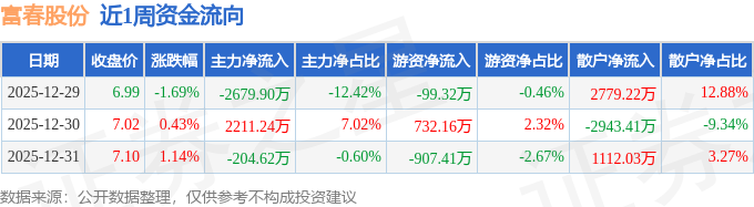 资金流向数据方面,本周富春股份主力资金合计净流出673.28万元,游资资金合计净流出274.57万元,散户资金合计净流入947.85万元。本周资金流向一览见下表: