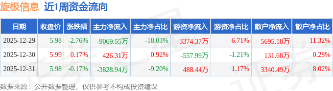 资金流向数据方面,本周旋极信息主力资金合计净流出1.25亿元,游资资金合计净流入3304.82万元,散户资金合计净流入9167.35万元。本周资金流向一览见下表: