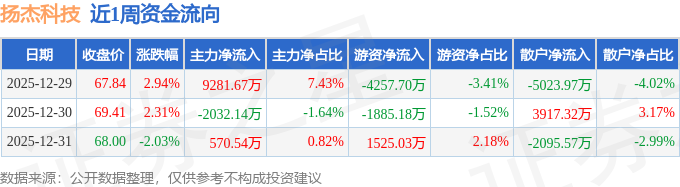 资金流向数据方面,本周扬杰科技主力资金合计净流入7820.07万元,游资资金合计净流出4617.85万元,散户资金合计净流出3202.23万元。本周资金流向一览见下表:
