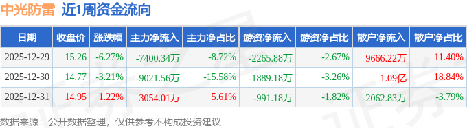 资金流向数据方面,本周中光防雷主力资金合计净流出1.34亿元,游资资金合计净流出5146.23万元,散户资金合计净流入1.85亿元。本周资金流向一览见下表: