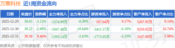 资金流向数据方面,本周万集科技主力资金合计净流出1.27亿元,游资资金合计净流出5078.48万元,散户资金合计净流入1.78亿元。本周资金流向一览见下表: