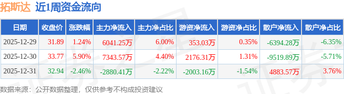 资金流向数据方面,本周拓斯达主力资金合计净流入1.05亿元,游资资金合计净流入526.18万元,散户资金合计净流出1.1亿元。本周资金流向一览见下表: