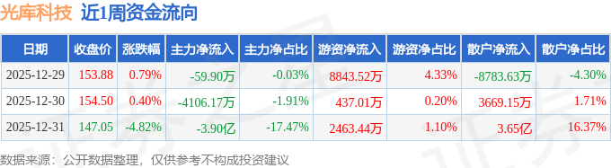 资金流向数据方面,本周光库科技主力资金合计净流出4.32亿元,游资资金合计净流入1.17亿元,散户资金合计净流入3.14亿元。本周资金流向一览见下表: