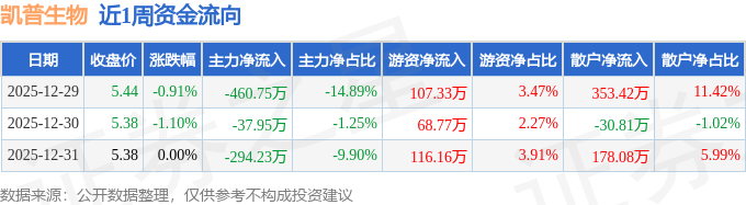 资金流向数据方面,本周凯普生物主力资金合计净流出792.94万元,游资资金合计净流入292.25万元,散户资金合计净流入500.68万元。本周资金流向一览见下表: