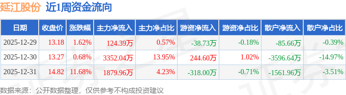 资金流向数据方面,本周延江股份主力资金合计净流入5356.39万元,游资资金合计净流出112.14万元,散户资金合计净流出5244.26万元。本周资金流向一览见下表: